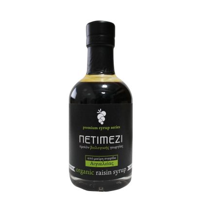 Μοναδικής ποιότητας πετιμέζι από 100% βιολογικές μαύρες σταφίδες Αιγιαλείας. Το πετιμέζι είναι γλυκαντική ουσία που προέρχεται από τα σταφύλια αλλά και τις σταφίδες. Ο μούστος είναι ο χυμός που παράγεται από την σύνθλιψη της σταφίδας. Το πετιμέζι έχει υψηλή περιεκτικότητα σε σίδηρο και χρησιμοποιείται παραδοσιακά σε προβλήματα αναιμίας. Είναι ιδανικό για καθημερινή χρήση σε αντικατάσταση της ζάχαρης. Μπορείτε να το χρησιμοποιήσετε σε ροφήματα, τηγανίτες, τάρτες, λουκουμάδες αλλά και στη μαγειρική, όπως σε κρέατα, ψάρια, σάλτσες κ.α. 200ml