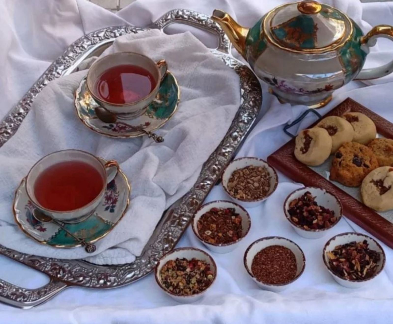 Ρόφημα για χαλάρωση με φύλλα δυόσμου, χαμομήλι, φύλλα βατόμουρου, μελλισόχορτο, φύλλα φράουλας, πέταλα τριαντάφυλλου, λουλούδια πορτοκαλιάς.