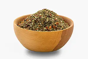 Το μείγμα, μεταξύ άλλων, περιέχει λιαστή ντομάτα, καρότο, κόκκινες και πράσινες πιπεριές, σχοινόπρασο, κόλιανδρο, εστραγκόν, βασιλικό, μάραθο.